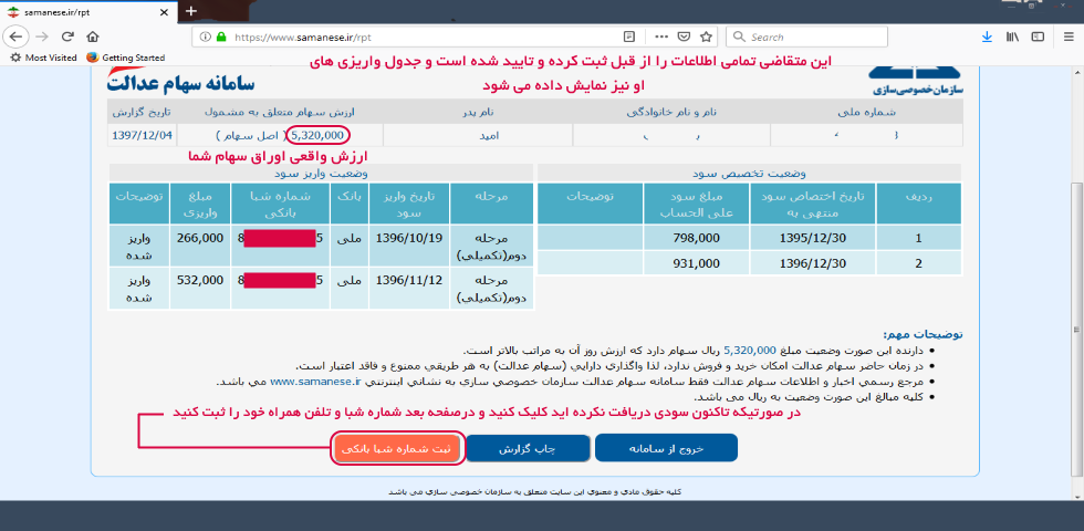 در چند گام بسیار ساده و تصویری شماره شبا خود را برای واریز سود سهام عدالت ثبت کنید و یا استعلام تعداد واریزی ، مانده ارزش واقعی سهام و... را بگیرید