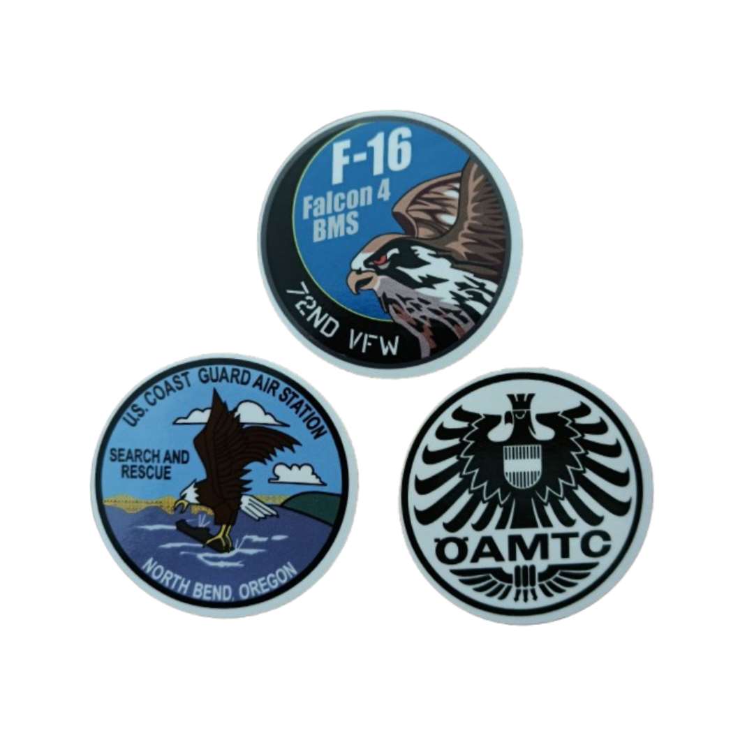 برچسب گرد رنگی شیشه سواری طرح عقاب و F16 کد ۲۲۰ ( پک ۳ عددی )